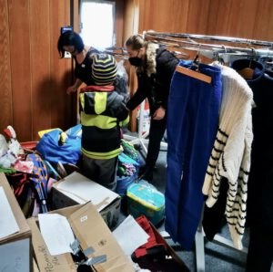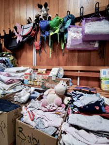 Es ist eigentlich alles da, was benötigt wird, von Hygieneartikeln (Windeln, Binden, Slipeinlagen, Duschgel, Taschentücher,….) über Kleidung (Schuhe, Jacken, Hosen, Blusen und Hemden, T-Shirts, ….) bis hin zu Spielzeug und Babykleidung und Babynahrung. Hier noch einmal der Dank an alle Spender und Helfer aus dem Alten Land.