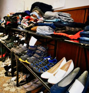 Насправді є все необхідне, від засобів гігієни (підгузки, прокладки, прокладки, гель для душу, носові хустки,…) до одягу (взуття, куртки, штани, блузки та сорочки, футболки,…) іграшки та дитячий одяг та дитяче харчування. Ще раз дякуємо всім жертводавцям та помічникам зі Старої Країни.